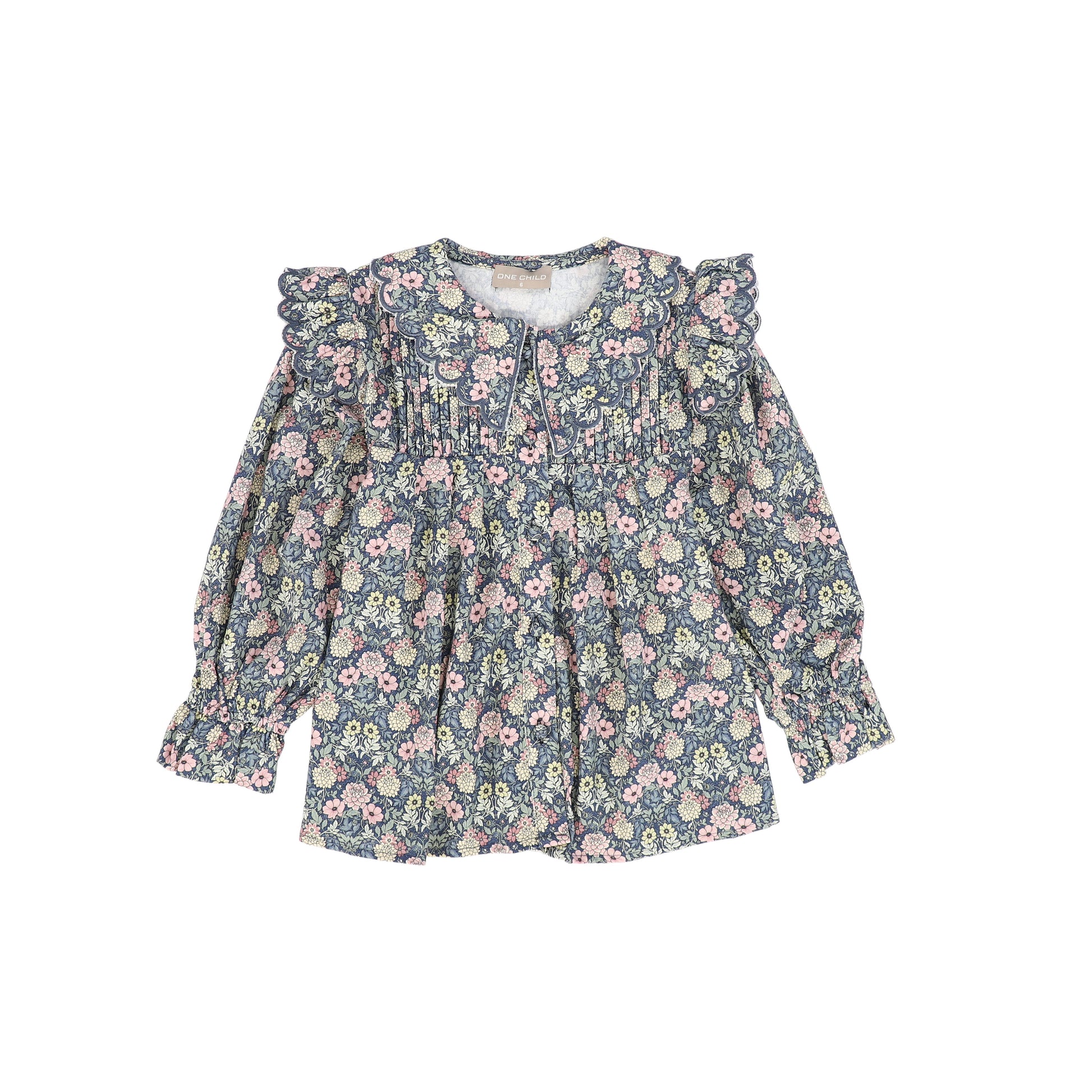 ONE CHILD PINK/GREEN FLORAL SCALLOP TRIM BLOUSE