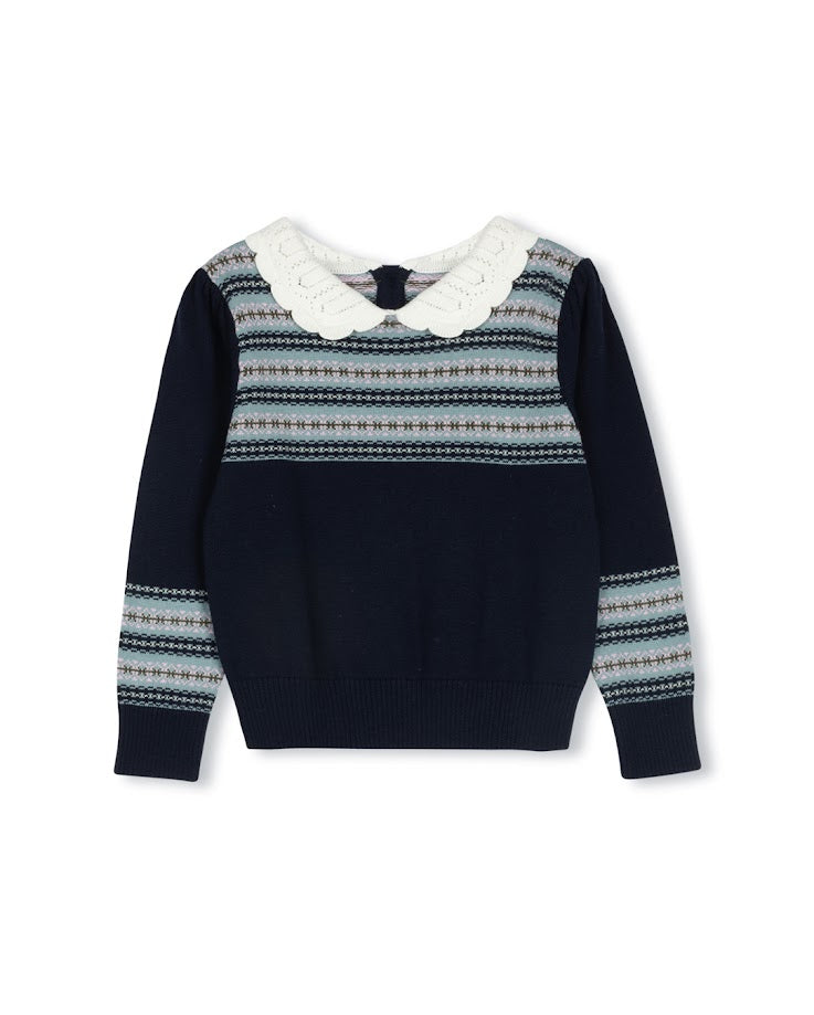 PAPILLON NAVY FAIR ISLE COLLAR SWEATER