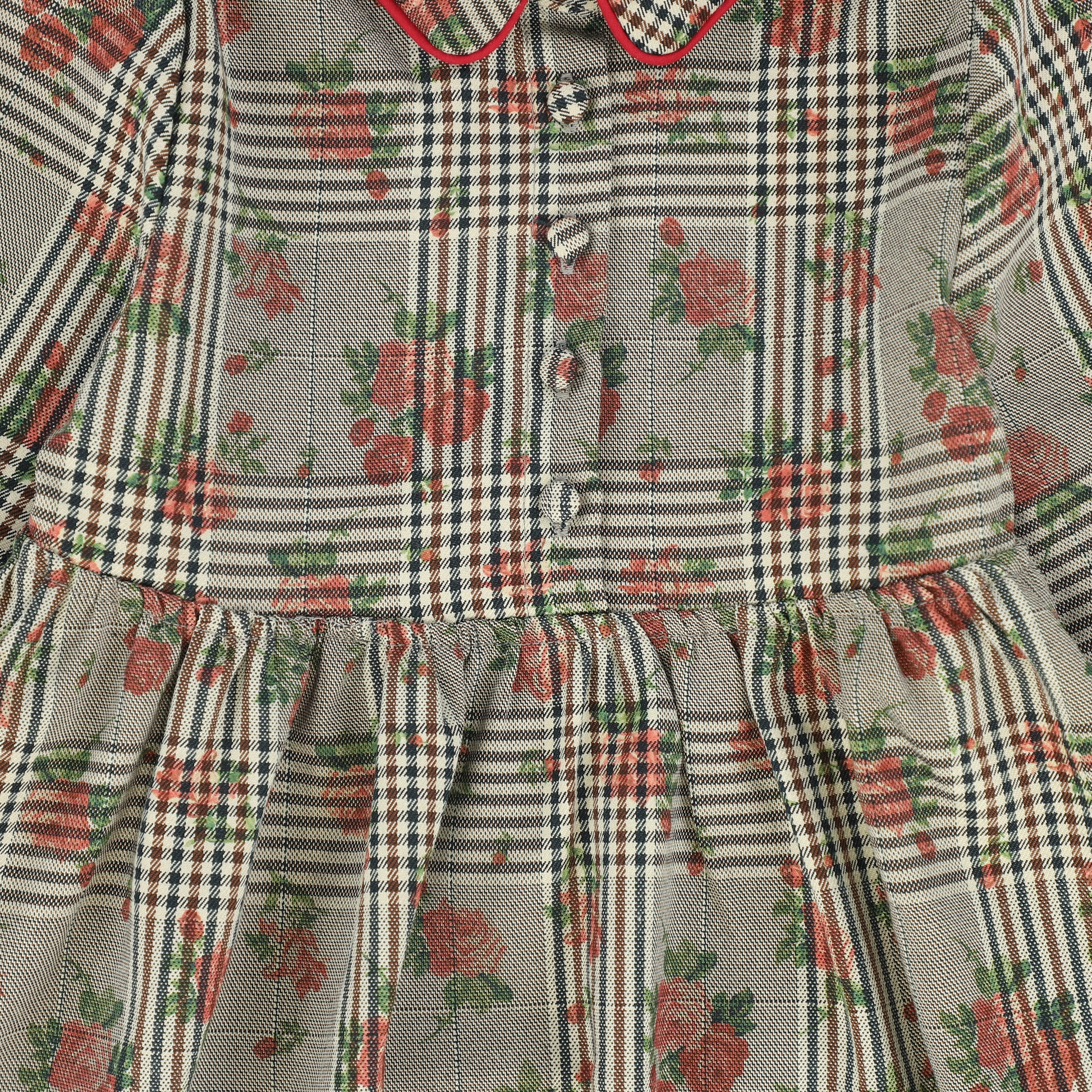 PAPILLON OLIVE GREEN FLORAL PLAID DRESS
