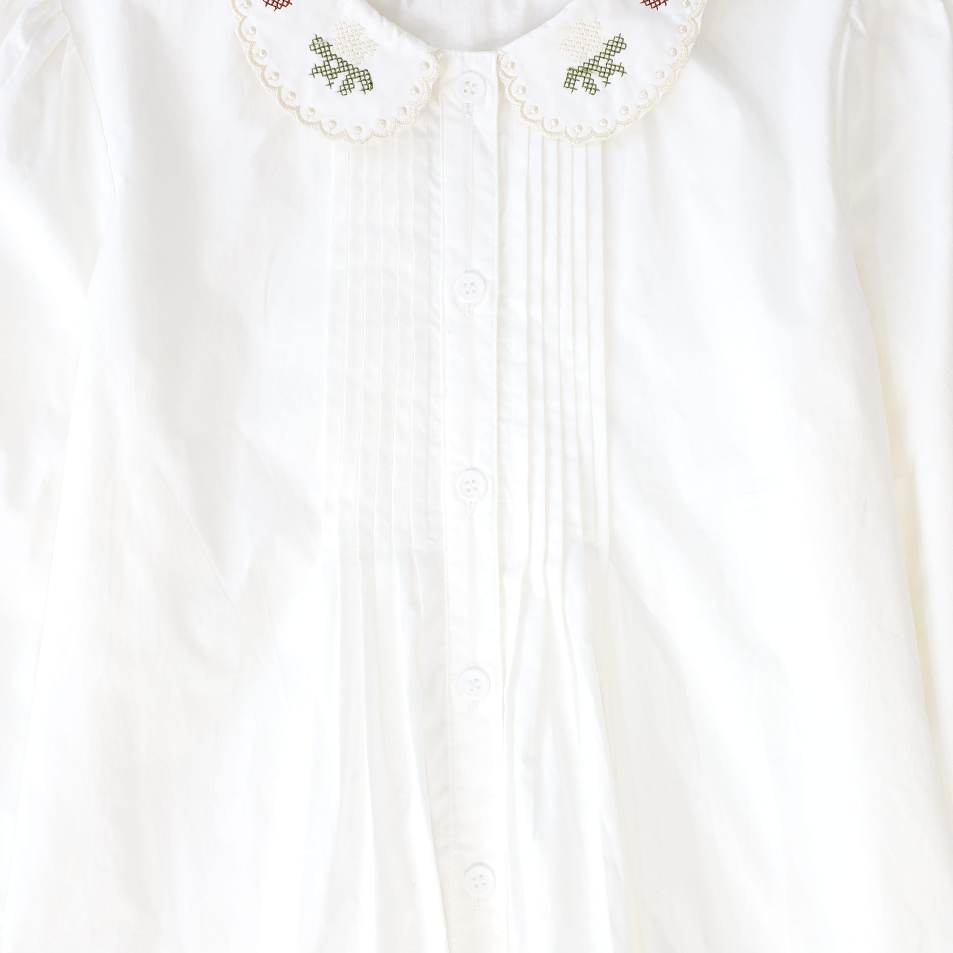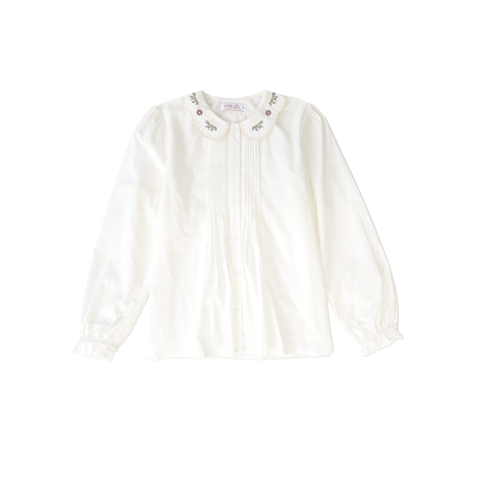 PAPILLON WHITE PLEAT EMBROIDERED COLLAR BLOUSE