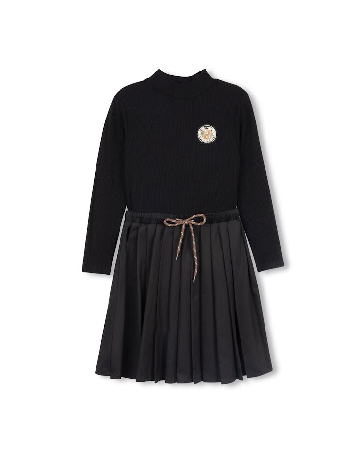 PHIL AND PHOEBE BLACK RIBBED EMBLEM CRINKLE DRESS