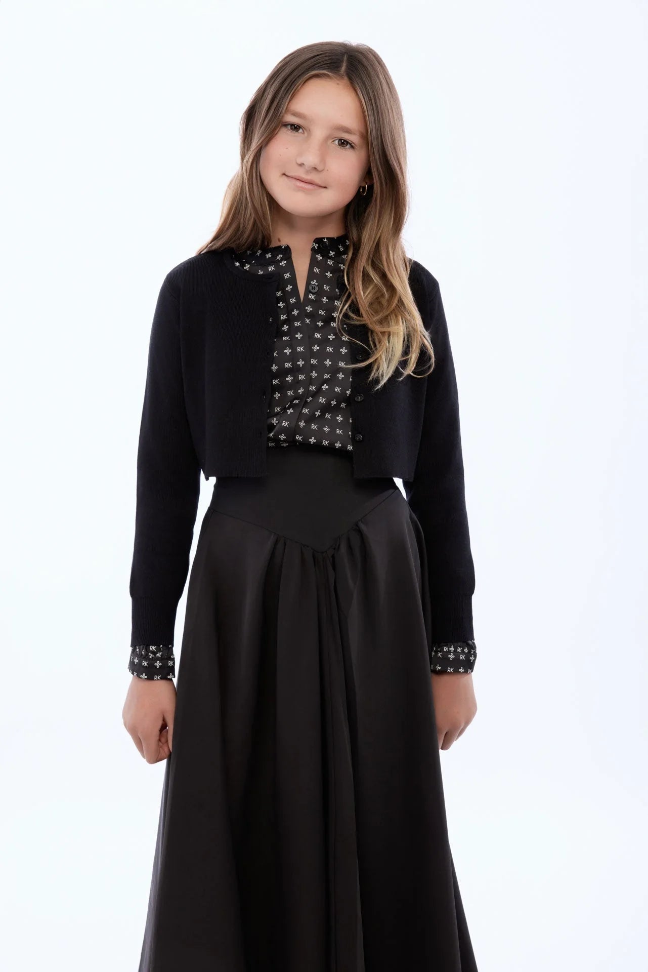 RETRO KID BLACK/CREAM PRINT SILK BLOUSE