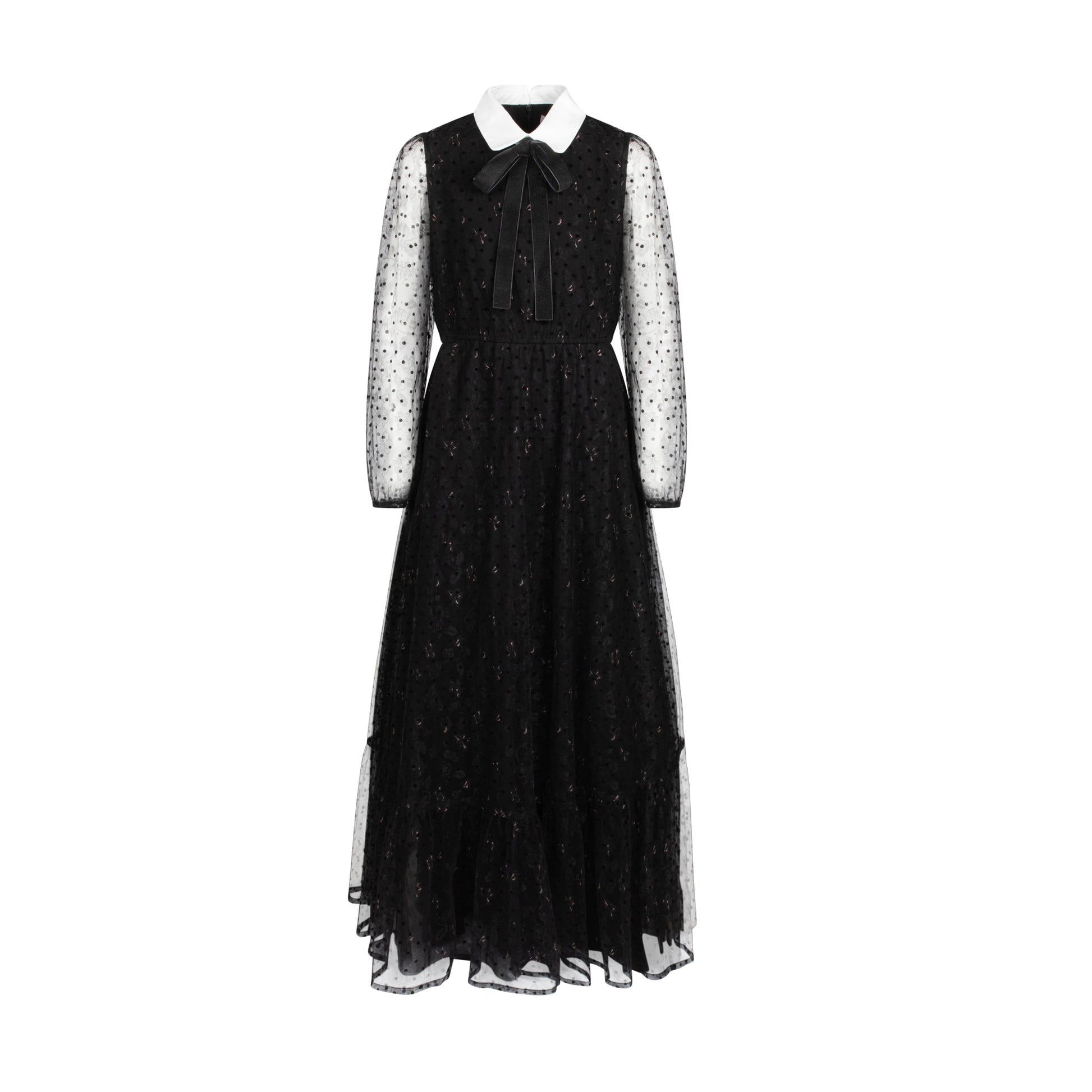 SOIREE BLACK VELVET DOTTED COLLAR GOWN