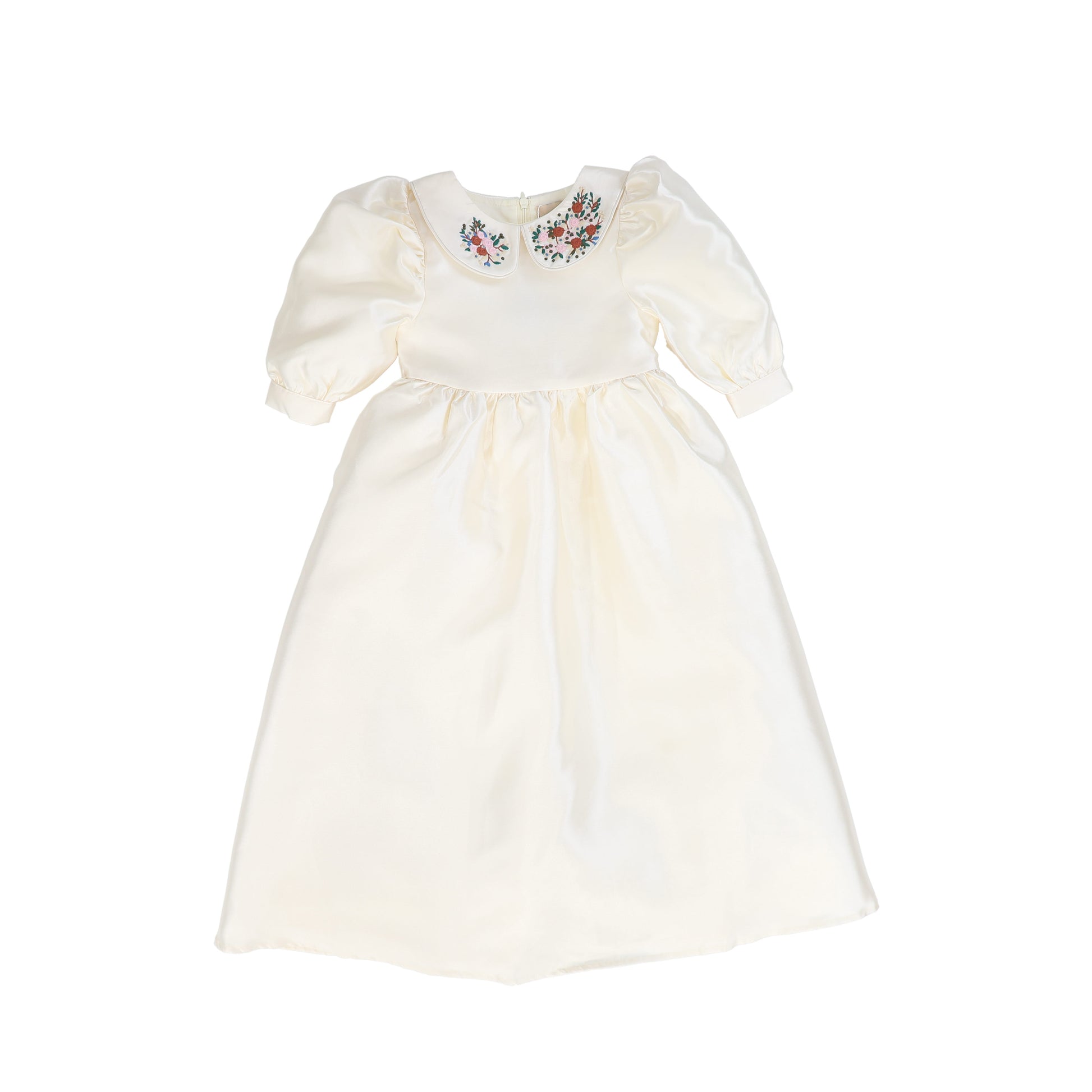 SOIREE CREAM SATIN EMBROIDERED COLLAR GOWN