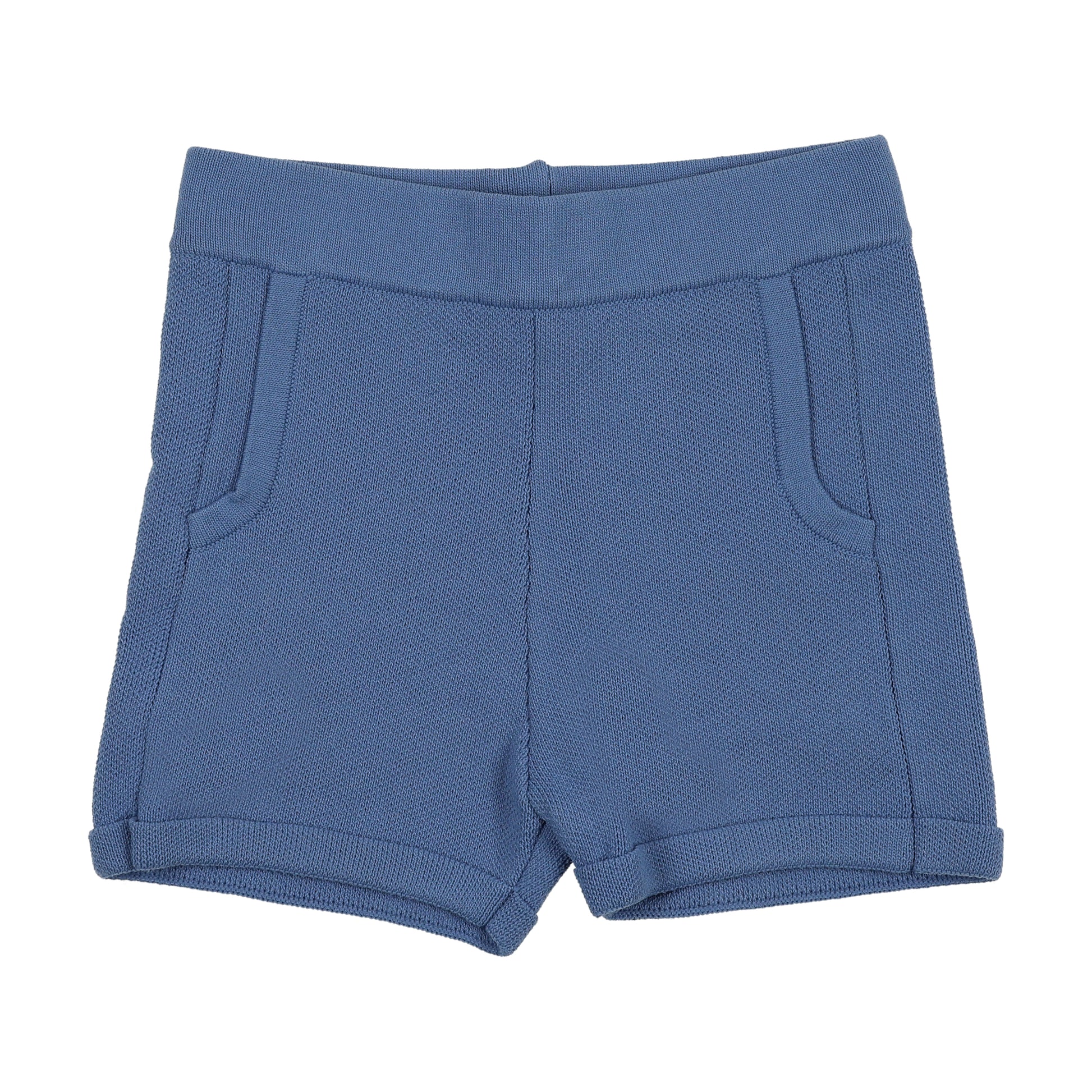 SWEET THREADS BLUE KNIT BUTTON SHORTS
