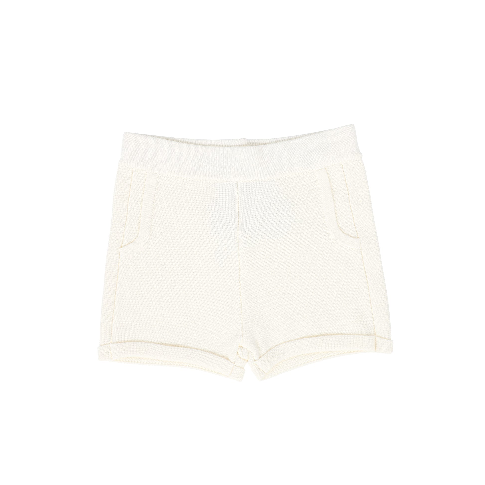 SWEET THREADS IVORY KNIT BUTTON SHORTS