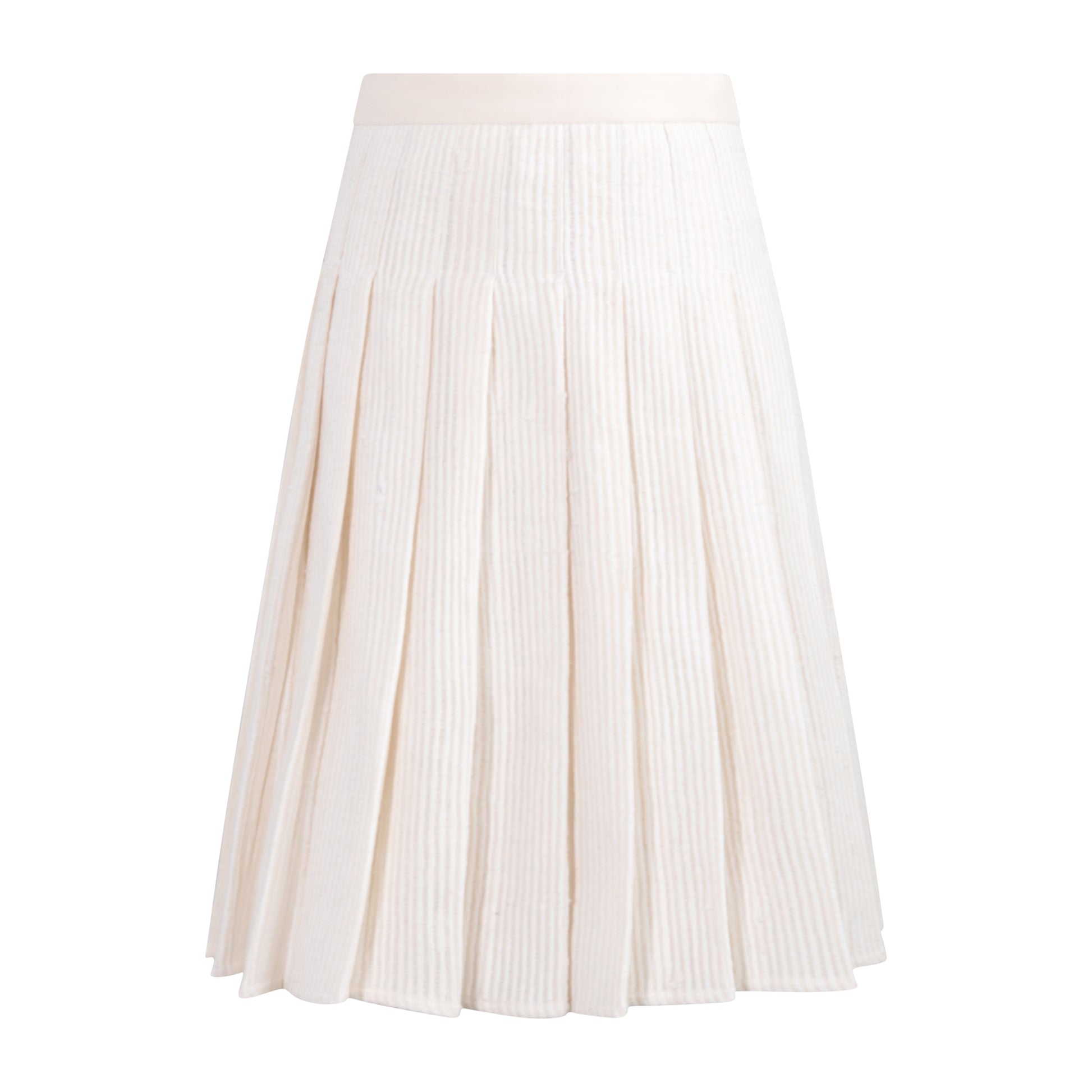 TNTRM WHITE WOVEN PLEAT MIDI SKIRT