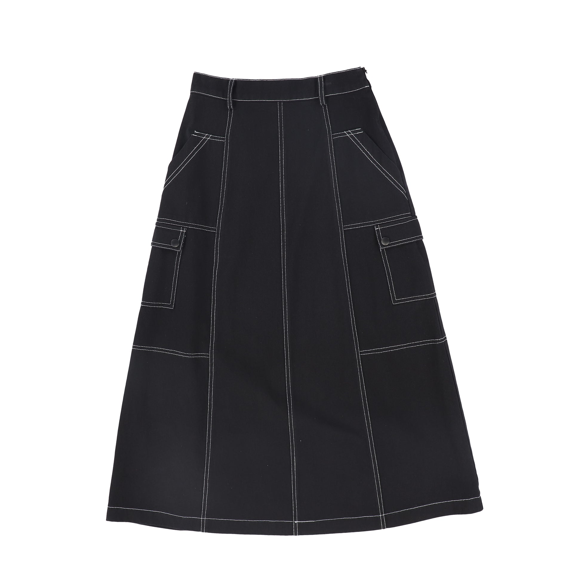 VALENTINA BLACK CARGO STITCH DETAIL MAXI SKIRT
