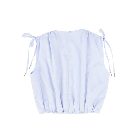VALENTINA BLUE STRIPED LINEN BUBBLE BLOUSE (Size) XXS