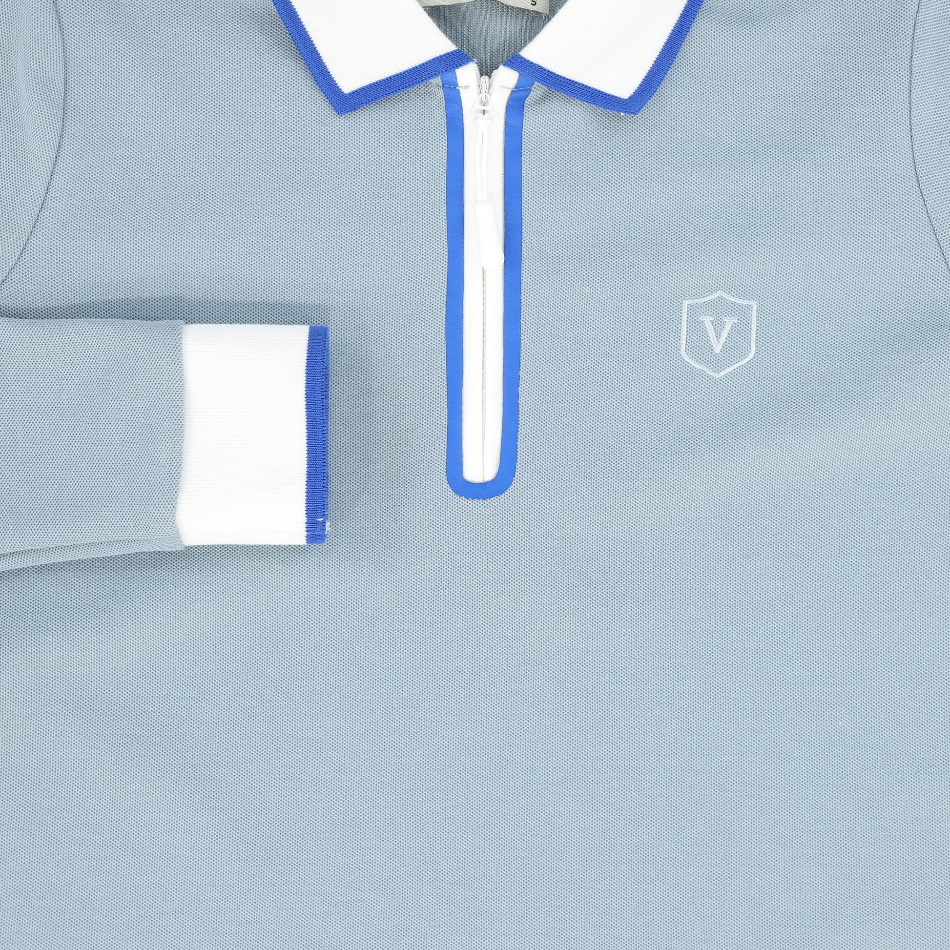 VALENTINA BLUE ZIPPER PIQUE POLO