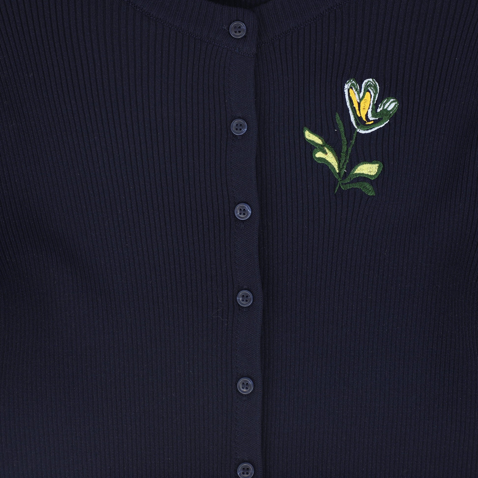 VALENTINA NAVY RIBBED KNIT EMBROIDERED CARDIGAN