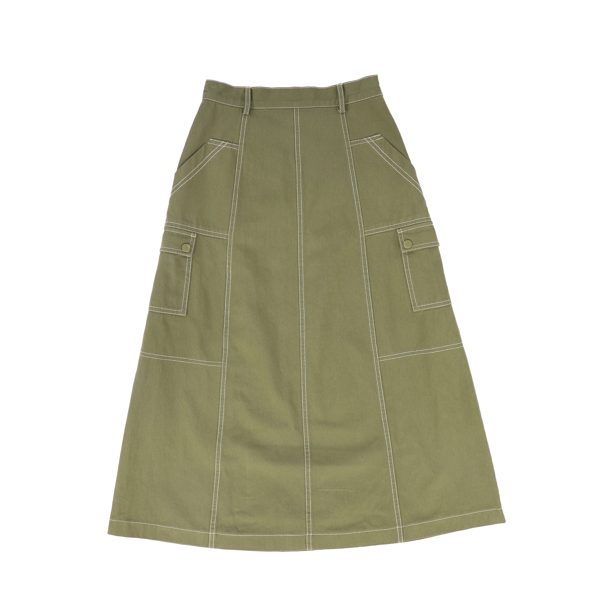 VALENTINA OLIVE CARGO STITCH DETAIL MAXI SKIRT