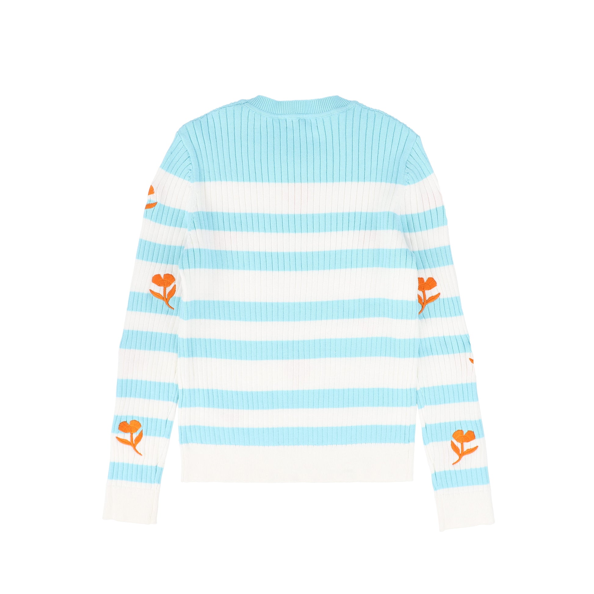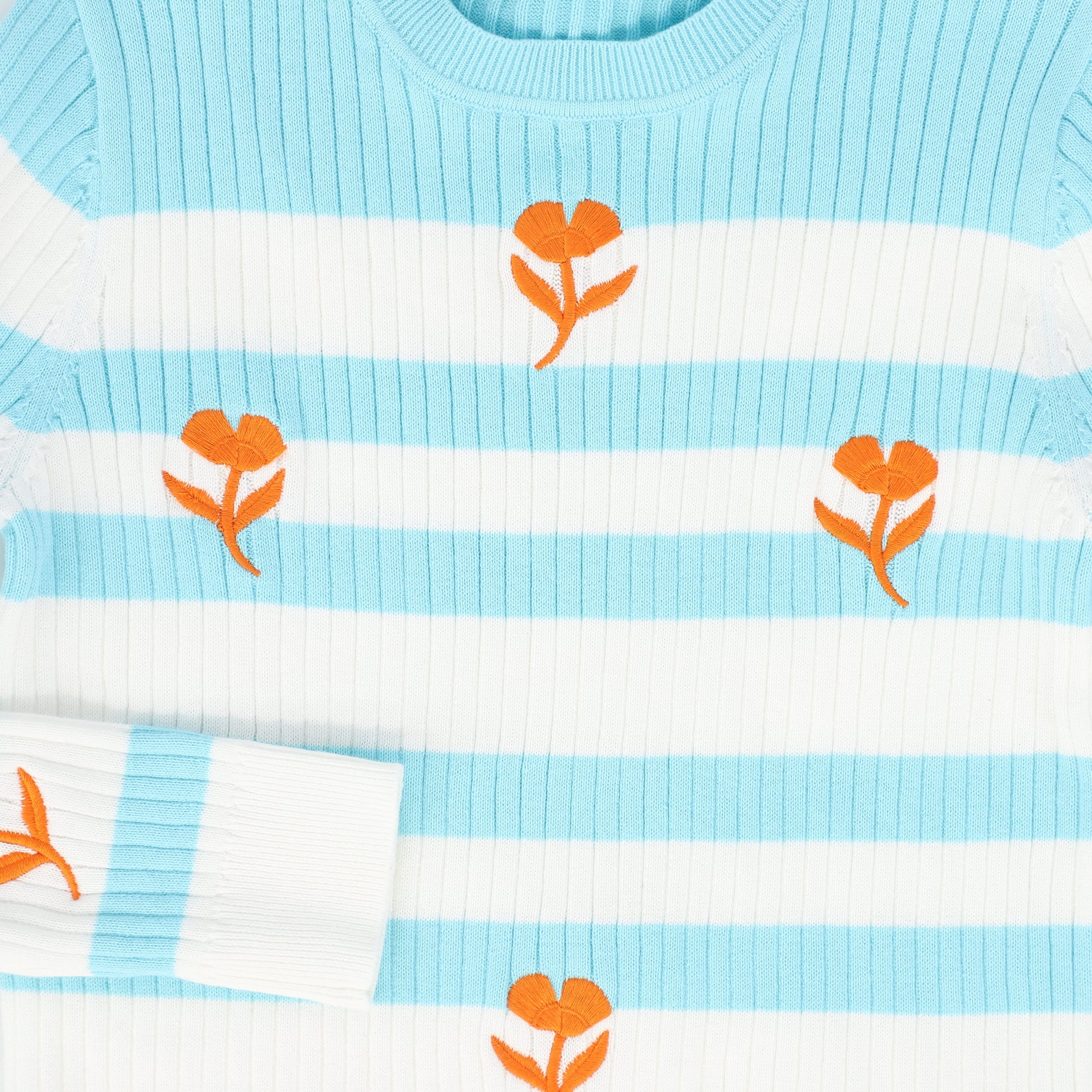 VALENTINA TEAL FLOWER EMBROIDERED STRIPE SWEATER
