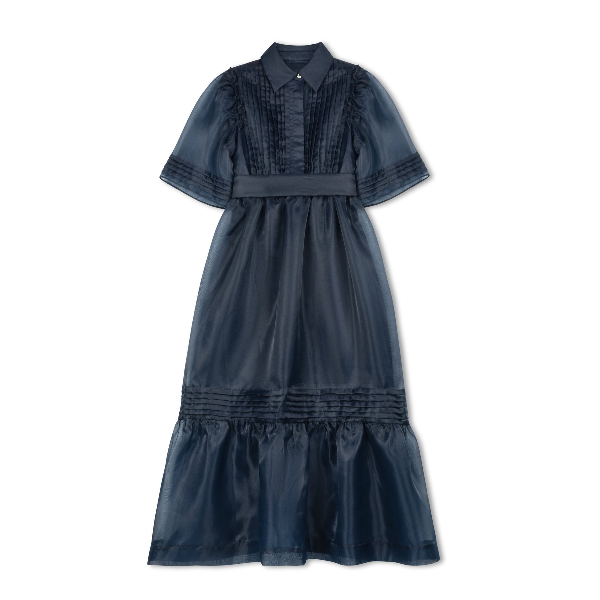 VELVETTE LABEL BLUE ORGANZA PUFF SLEEVE MAXI DRESS