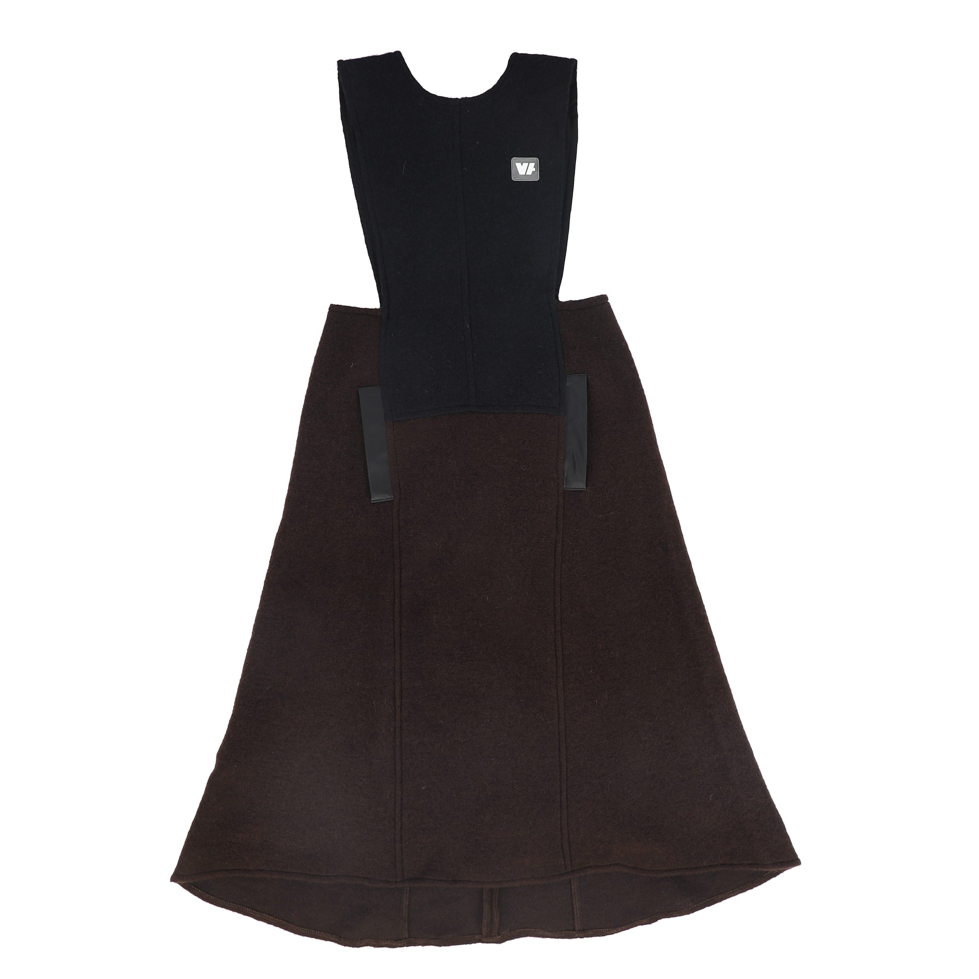 VENERA ARAPU BROWN WOOL OVERLAY LOGO DRESS